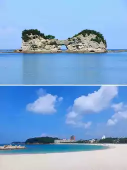 The entire beach is a semi-circular crescent moon🌙, with fine white sand🐚 and azure waters, truly living up to its name as the Hawaii of Japan