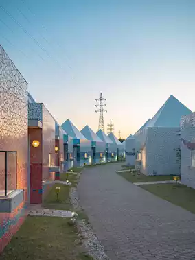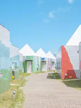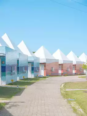 and there are many villas with triangular roofs lined up🏘️