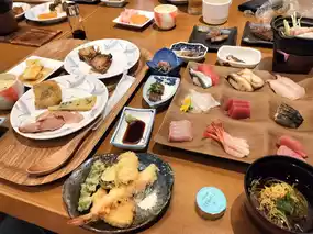 Musashi style, using local food. The open kitchen is a major feature of Musashi. Japanese restaurants always use nine-square plates to pick up their favorite dishes.