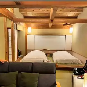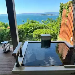 🌸The room is a duplex. The first thing you see when you enter the house is the bedroom, and the lower floor is the living room, Japanese-style room and bathroom. The hot spring is located on the outdoor terrace. You can soak in the hot spring while looking at the endless sea, which makes you feel relaxed and comfortable.