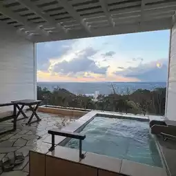 ♨️The room has a hot spring where you can enjoy a unique relaxing and soothing experience while enjoying the magnificent sea view. This design, combining hot springs and sea views, brings an unparalleled enjoyment to the journey.