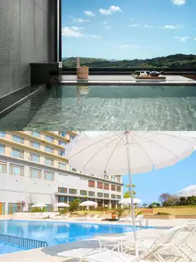 Even better, the hotel has a large bath with ocean views on the top floor 🌊, so you can enjoy the hot spring while taking in the ocean views. Soak in the hot spring water, with blue skies and white clouds above you and the vast Pacific Ocean in front of you. The sea breeze blows gently, and the waves crash against the shore, as if the whole world has stopped, and all your fatigue is gone!
