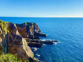 Admire the sapphire blue Pacific Ocean and the beautiful coastline weathered by the years.