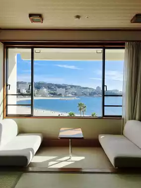 The hotel is right above Shirahama Beach🏝️