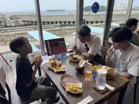 It was already afternoon when we arrived. After putting down our luggage, we went to the beach🏖️ to enjoy the beautiful sunset. For dinner, the hotel arranged an all-you-can-eat Kumano beef~ Then enjoy the hot spring and relax. There is also night ramen at 22:00 at night.