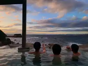 The open-air bath is mixed-gender, but it feels like it's connected to the ocean... The sunset is breathtaking👍