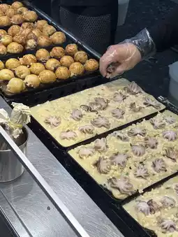 If you’re visiting Tore Tore Market in Shirahama, don’t leave without trying the legendary takoyaki at Odori Dako — this isn’t your average takoyaki stand. What makes it stand out? Each ball has an entire baby octopus inside!