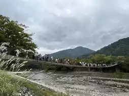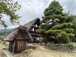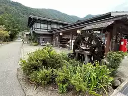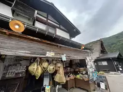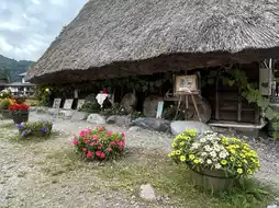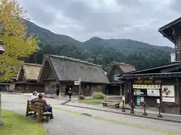 Arrive at Gassho Village, first walk through a suspension bridge, then you will see a small Akiba Shrine, follow the walking path towards the village, Gassho-style huts have souvenir shops, selling five flat cakes, selling ice cream shaved ice, also restaurants, tea house and so on. A little further inside there are residential houses that still live here, so everyone should be quiet.