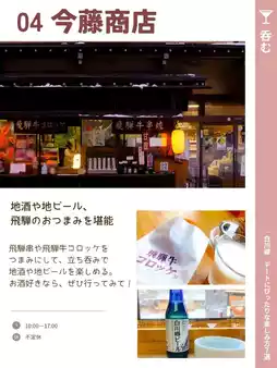 You can enjoy local sake, local beer, and Hida snacks 😋