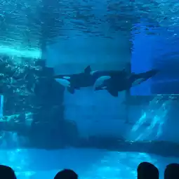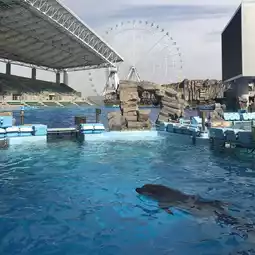 Nagoya Aquarium is the only aquarium in Japan with killer whales, beluga whales, and dolphins! 💙 🐋 It's also Japan's largest outdoor aquarium! They also offer a close-up dolphin show, and the Ferris wheel in the background is a delightful spectacle. 🐬🎡