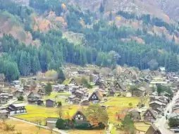 Gassho Village in autumn is like a fairy tale world, colorful