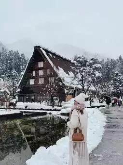 The most recommended photo spot in Shirakawa-go is the observatory, where you can have a panoramic view of the entire Gassho Village! It's a pity that we didn't go up today because it was snowing and too cold. 😭 If the weather permits, I strongly recommend going to the observation deck. You can choose to walk (about 5 minutes) or take a shuttle bus up the mountain. Private cars are not allowed to drive up there!
