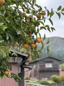 Crystal-clear streams flow through the village, reflecting the mountain scenery and the silhouettes of the houses, creating a picturesque view. At the foot of the mountains, persimmon trees laden with fruit add a vibrant touch of orange-red to the autumn landscape🍊.