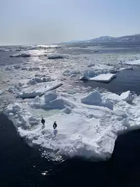 Even when it was below minus 10°C, it was hot to walk around in a knit or coat. However, it was cold when the wind hit my face or skin directly, so it was useful to have a hood or scarf. Drift ice also comes in various shapes and colors. I sincerely hope that everyone can see their ideal drift ice.