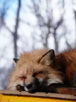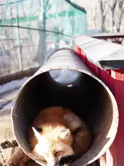 After walking a while, there are foxes here and there, curled up because it's cold, drinking water, etc. It was really cute to see them up close.