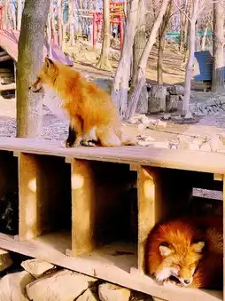 The park is not big, but it houses a hundred little foxes. You can tell that the park takes very good care of them. Each one has very beautiful fur. The park is also very clean. You can watch the little foxes at a very close distance, and you can also see their daily lives, such as quarreling and fighting for territory, hahaha.