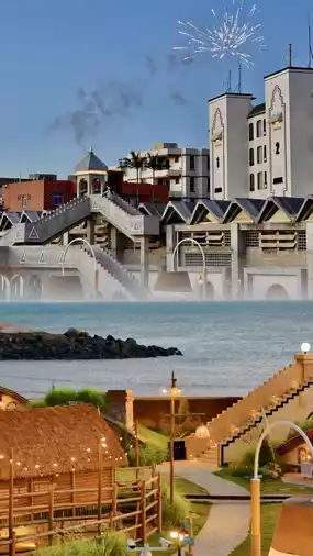 • White spiral staircase, sea swing, rainbow stairs, Moroccan-style courtyard, perfect for Instagram-style photos.