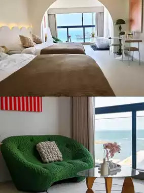 1️⃣ Open the window to see the sea—absolutely breathtaking! Huge floor-to-ceiling windows facing the ocean, watching the sunrise and sunset is simply tear-jerkingly beautiful😭