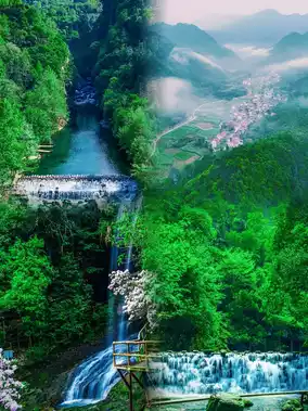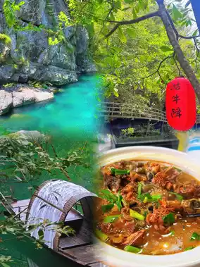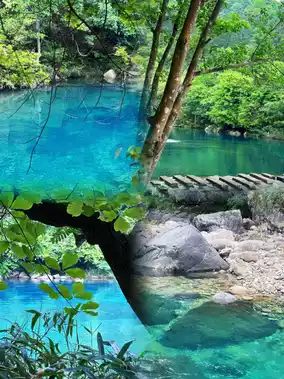 1️⃣ Longmen Pool: The emerald-colored pool is crystal clear. Bamboo rafting (CNY 30/person) is like entering Jiuzhaigou, with reflections of the cliffs on both sides forming a painting.