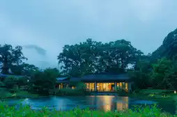 The floor-to-ceiling windows of the hotel lobby are a grand natural theater.