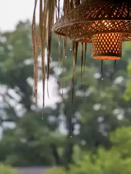 Dashing into the rain? Better to sit cross-legged on the terrace under the eaves.