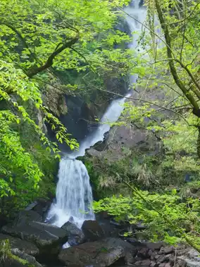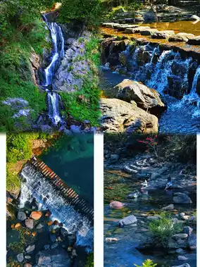 2️⃣ Four-tier Waterfall: The waterfall rushes down from a height. Standing in front of it, you can feel the grandeur of nature. Capturing the moment is incredibly impactful!