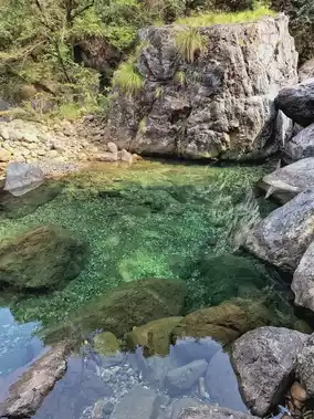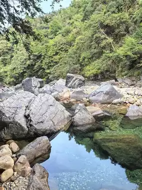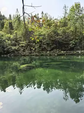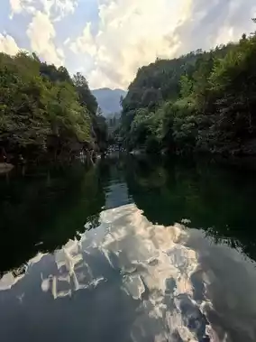 1️⃣ Longmen Pool: The emerald-green water looks like jade. Hop on a bamboo raft, and every shot you take will be a stunning masterpiece. Wearing light-colored clothes makes the photos even better!