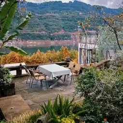 2025 Good Place | A small courtyard hidden in the hillside, close to the rippling lake