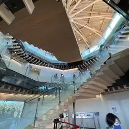 The stairs are made to look like they are floating in the air, the beams are layered on top of each other, and the building reminds me of Hogwarts, and I, a middle school student with a complex, was excited to the max (*≧m≦*)Hehehe