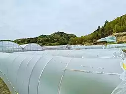 There are many plastic greenhouses at the foot of Kunozan Toshogu Shrine.