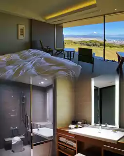 A 10-minute walk from the Dream Terrace platform of Nihon-daira is a Nihon-daira Hotel. This is the fourth Fuji Mountain view hotel I unlocked after Lake Kawaguchi Rainbow Sunset Fuji, FUFU Lake Kawaguchi and Gotemba Hotel Clad. You can see Mount Fuji and the entire Shimizu Port from the room. If the weather is good, you must get up early to watch the sunrise and red Fuji. It's so spectacular to watch the sunrise slowly dye the snow-capped Mount Fuji red! The hotel's large lawn facing Mount Fuji is also very photogenic, no matter how you shoot it, it looks good! The hotel provides a free shuttle bus to and from Shizuoka Station, which is very convenient even for free travel