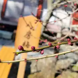 After climbing the 1,159 stone steps, I found plum blossoms in bloom, although it was a little early.