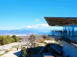 Nihon-daira, which was once the setting for the legend of Yamato Takeru no Mikoto's eastern expedition, is a hill with an altitude of 307m, overlooking Mt. Fuji to the northeast and containing Suruga Bay and Miho no Matsubara below. This landscape, which overlooks the mountains, sea, and sky, has been a subject of art since ancient times, and many artists have created masterpieces as a majestic subject likened to Chinese landscapes. The Nihon-daira Yume Terrace was built in 2018 on the summit of Nihon-daira. It is an observation deck that literally boasts a 360-degree panoramic view, and its charm is outstanding. Furthermore, the unique wooden building designed by Kengo Kuma (1954-) is dome-shaped but deliberately incorporates subtle misalignments and distortions, which do not interfere with the horizontal line of sight formed by the mountain shape of Mt. Fuji, adding a stunning contrast to the landscape. In addition to its role as an observation facility, the building also serves as a museum that explains the beauty of Nihon-daira from the perspectives of natural science and humanities. On the first floor, there is a dry landscape garden with Mt. Fuji as a backdrop. If you view it after learning the theoretical background in the explanation section above, you can gain a deeper understanding and experience of the lineage of landscape culture that has been passed down for generations. Above all, the harmony between the natural landscape and the manmade objects, and the way in which the charm of each and the spirituality of the people are expressed and intertwine, gives us a glimpse of the great influence of this art as a typical example of Japanese art.