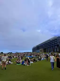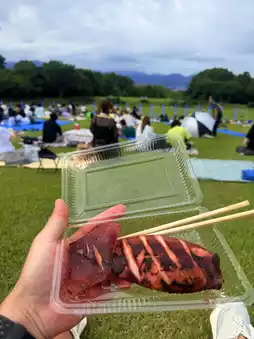 Thanks to the vast outdoor garden space, the free viewing areas are divided into three sections—left, center, and right—all providing excellent views of the fireworks. Attendees often bring mats to picnic, enjoy the view of Mount Fuji, and then lie down to watch the fireworks, which burst spectacularly overhead. The fireworks are synchronized with music, creating a moving summer atmosphere.