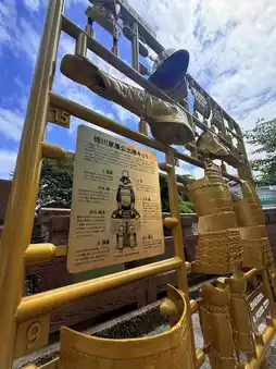 The beauty of Japan is truly captivating. Upon entering Suruga Castle Park, you'll be struck by the massive golden armor—a replica of the battle uniform once worn by Tokugawa Ieyasu, a truly spectacular sight.