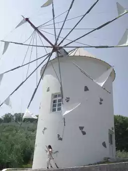 The contrast between the windmill and the olive trees is beautiful! The olive-colored mailbox is also adorable, making it perfect for photos!