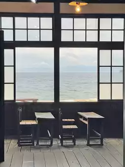 The classroom was great, as I could study while watching the calm sea and listening to the sound of the waves.