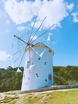 Because Shodoshima's climate is very similar to the Mediterranean, olives are also abundant here. Olive Park has a windmill with Greek flair. Don't forget to borrow a broom from the visitor center and cosplay a scene from 'Kiki's Delivery Service' here.