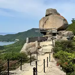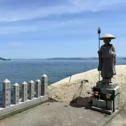 Considering that I was going with a bicycle and the Japanese inn I was staying at was near Tonosho Port, I chose the third option. After setting sail from Takamatsu Port, I passed Megijima, Ogijima, Oshima and Teshima along the waterway. These are all inhabited islands. I arrived at Shodoshima around noon. After storing my luggage at the hotel, I started my bicycle trip. I first went to the largest shopping mall on the island for lunch, then circled the area below the Tobu Strait and visited various attractions. What surprised me most was that the stone walls of Osaka Castle were produced in Shodoshima, and there were still traces of stone cutting fields in many places on the island. The other one was It is a heavy rock hiking trail. At the end of this trail is a huge boulder standing there. Of course, as the Japanese believe in the gods of heaven and earth, there must be a shrine! In fact, it is a bit like the wind-moving rocks commonly seen in various places in Taiwan. However, the scenery here is first-class. From time to time, you can see the transport boats passing by between Takamatsu and Shodoshima. Finally, I rode a circle and returned to Tonosho Port. There were several works of the "Setouchi 2022 International Art Festival" exhibited near the port. I took a few photos to enhance my artistic atmosphere. It was almost time to check in. After going back to take a bath, I came to enjoy the Japanese cuisine of the hotel!