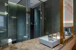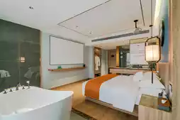 The hotel features a simple yet elegant design. The lobby is bright and tidy, with warm yellow lighting that instantly eases travel fatigue. The guest rooms are cozy and comfortable, with soft, skin-friendly bedding that helps you fully recover from the hike. The rooms are well-equipped with amenities like HD TVs, high-speed WiFi, and private bathrooms with separate wet and dry areas. The toiletries provided are both exquisite and practical.