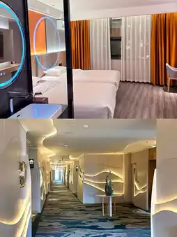 The rain in Guangzhou kept pouring nonstop. With no special plans for the Dragon Boat Festival holiday, I went to stay one night at the Xianglan Guanzhou Hotel that I had been longing to visit for a long time~ There were various packages on Trip.com, and I finally chose a twin room with breakfast and afternoon tea for 1288 yuan. An extra 200 yuan was charged for the Dragon Boat Festival. When I read that the room was 60 square meters, I had no concept of the size, but when I saw it, it was indeed very large—three times the size of where I usually rent. It felt just right for a family of four~ The balcony of the room was great, facing our beloved Shuangyashan University, with the archway and library clearly visible!