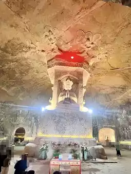 The Buddha statues are very large and exquisitely carved. Both the inside of the caves and the outside viewing platforms are beautiful.