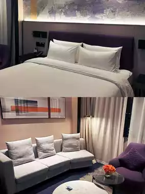 The overall decoration style is simple yet stylish. The lobby is spacious and bright, with lots of green plants ๐ชด, making you feel very comfortable as soon as you enter. The corridors and rooms are clean and tidy, with no peculiar smell. The bed in the room is moderately soft and hard, and there are also super comfortable large pillows. Lying on it at night and watching the night view ๐ is simply wonderful~