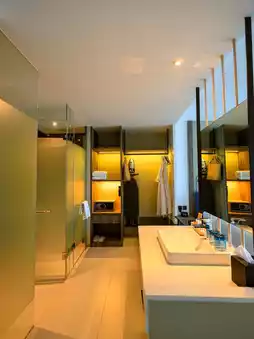 The room that I stayed in was a Seaview Premier villa, which was very spacious with a comfortable bed and complete amenities. The air conditioning was cool and the room was very private. The hotel has a central Infinity pool that offers a full view of the sea.