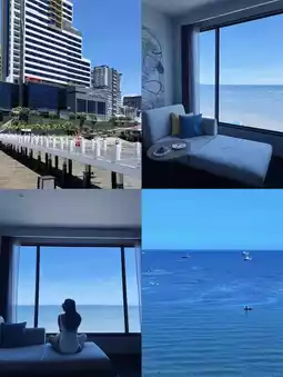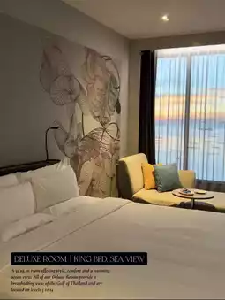 This is a seaside hotel in Sriracha. The sea view is worth millions. The bedroom is comfortable. You can see a very wide sea view. The glass in front of the window is like sitting by the sea. The facilities are complete. The swimming pool has a panoramic sea view. On the side of the hotel, there is Pier 39. You can walk to take pictures. Another beautiful content 1 group