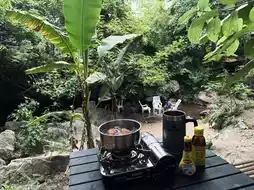 📍Pin. Pa. Lui. The Hidden Falls in the Secret Garden is both a cafe and a camping ground by a small waterfall. Listen to the sound of flowing water. The atmosphere is good, clean, and very shady. We can sit and soak our feet in the water. There are tables and chairs to choose from. Children can play in the water comfortably. Close to nature It is also close to Chantather Waterfall, only 1.5 kilometers away. Come and recharge your batteries and go back to work. 💚🍃