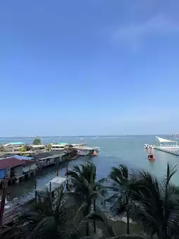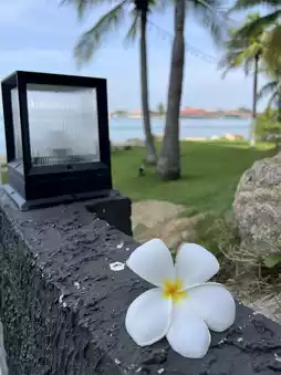 It is a hotel by the sea without a beach for swimming. But I am very impressed. 🥰🥰🥰 Both the service of the staff, the attentiveness and willingness to serve 💕 The hotel is beautiful, the facilities are complete. 🌳🍃 Shady