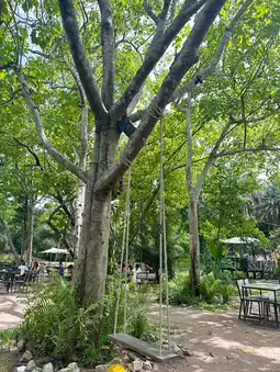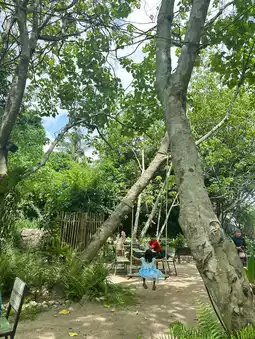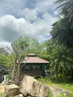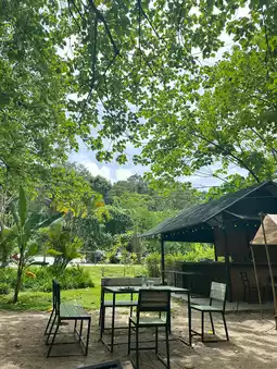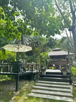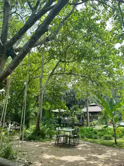 It is a nature-themed cafe located near Chan Ta Then Waterfall and Kahe with a small waterfall flowing through it 💦 You can sit and fall into the waterfall, but on the day I went, the water was low, so there was no water flowing through it. But sitting upstairs is cool, you can soak up the nature, and the drinks are very refreshing. I recommend it 🌈