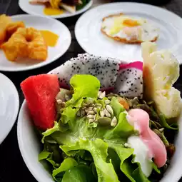 Breakfast has a variety of Thai / Chinese / Western / vegetarians can eat.