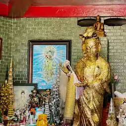 Between the stairs leading up to the chapel, there is a shrine to the Goddess of Mercy, Avalokiteshvara, the Great Bodhisattva of the South Sea, in various postures for worship.